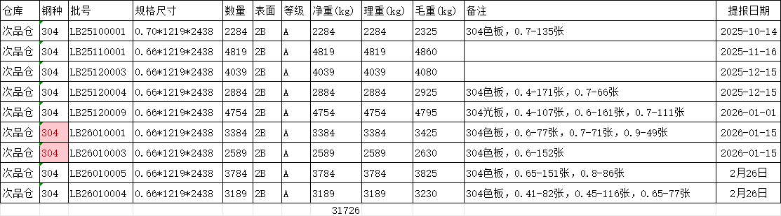 3月20日不锈钢废料及次品出售项目(金属)-304-二级板